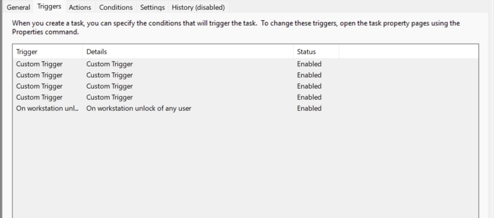 During the discovery of this vulnerability, the On Workstation unlock of any user trigger was not present on the latest Windows Insider, so instead we focused on the other triggers.
