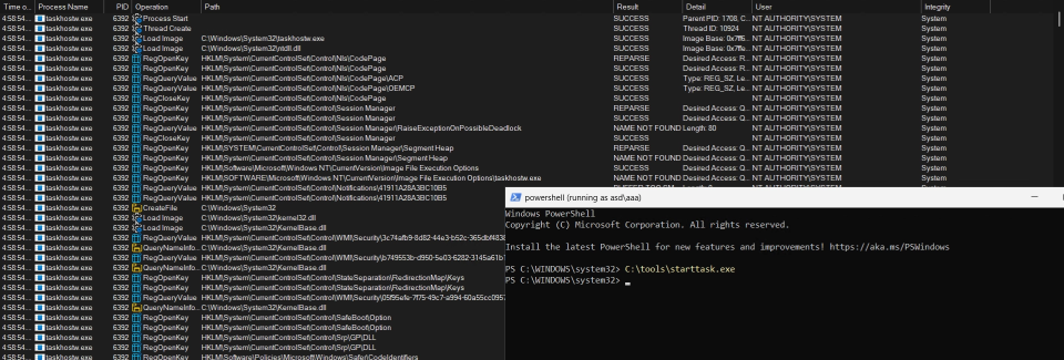 Running this code as a low privileged user successfully starts the scheduled task: