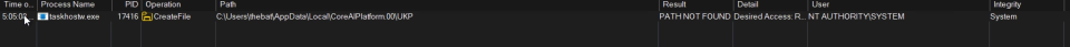 When the task is started it will try to open the C:\Users\%username%\AppData\Local\CoreAIPlatform.00\UKP directory which does not exist by default: